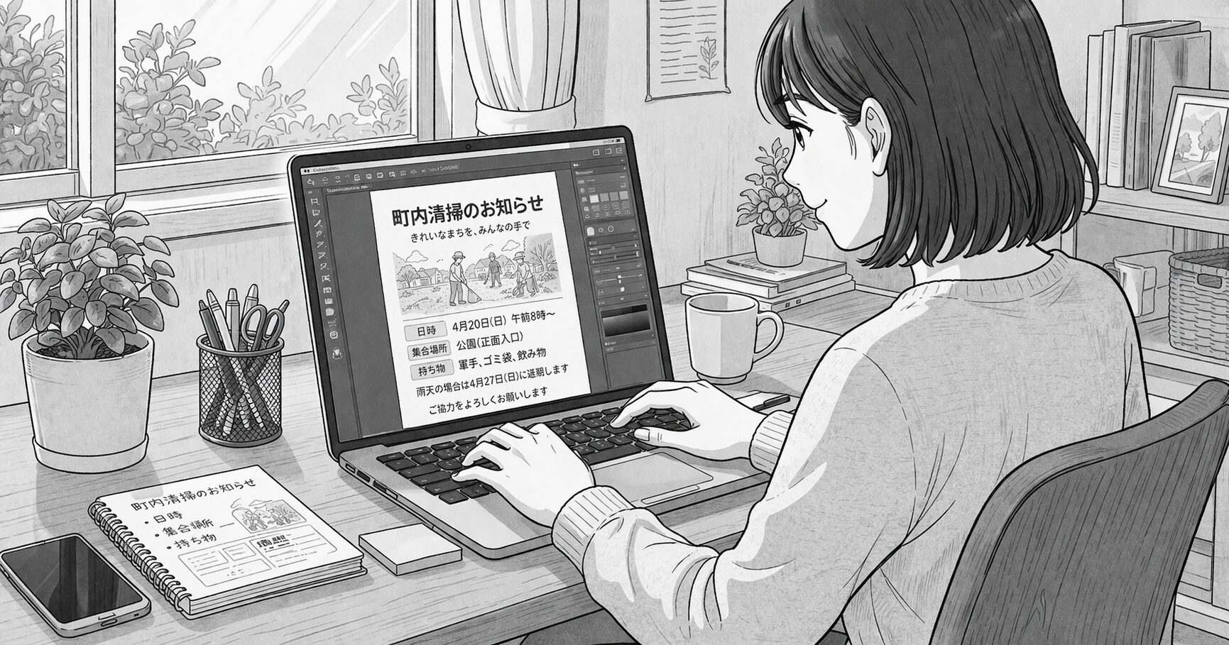 デザインが得意な住民が地域にいれば、少し報酬を払って頼むのも一つの手だ。それ自体が、若い世帯と自治会の新しい接点になる。